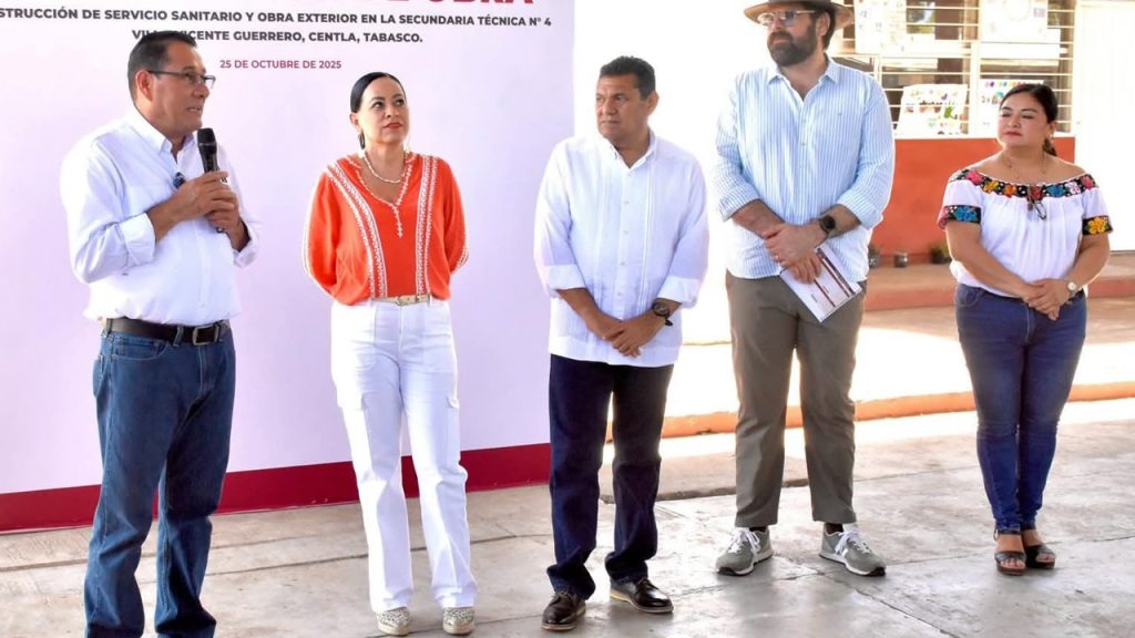 Inauguran Saúl Armando Rodríguez Rodríguez junto con Gobernador Javier May Rodríguez obra de construcción en la Villa Vicente Guerrero