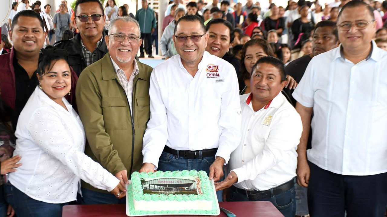 En el poblado Francisco I. Madero, el Presidente Municipal Ing. Saúl Armando Rodríguez Rodríguez, asistió para inaugurar la nueva cancha de usos múltiples del Plantel 55 del EMSAD, perteneciente al COBATAB.